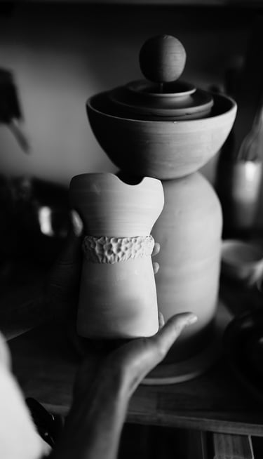 Forte d'une expérience riche et variée, je façonne avec amour et précision des pièces uniques qui allient tradition et modernité. Mes céramiques s'étendent des poteries à la fois traditionnelles aux créations contemporaines, Les objets prennent vie par leur forme ( techniques de sculptures, dessins, modelage)et par leur aspect ( touché brut, émaillé, engobé...).